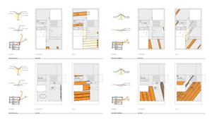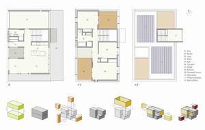 Located in an old downtown neighborhood in Racine, Wisconsin, this house for a young family demonstrates how a small, sustainable residence built with a moderate budget can fit into a rustbelt city suffering from decades of economic decline. One of the first LEED Platinum homes in the Upper Midwest, the house occupies a narrow infill lot along the edge of Lake Michigan, completing a row of residences built over the last century. Based on massing studies testing the building's performance in relation to site constraints, solar exposure, and vegetation, the building is a simple rectangular volume with a series of outdoor rooms—an entry court, elevated patios, and a main-level terrace—all confined within the boundaries of the rectangular volume itself. The main level's transparency allows for a visual link between the street and the lake, while the upper rainscreen system creates a deep, ventilated envelope with superior performance. Along the edges of the outdoor rooms, the façade transforms into a delicate scrim of aluminum rods, defining spatial boundaries without obstructing views.