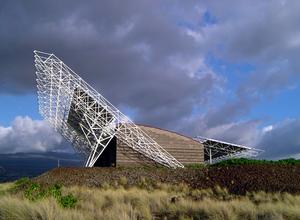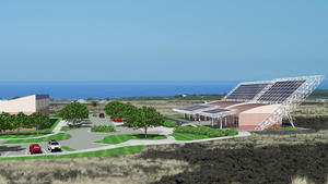 The visitor complex, available to the community for outreach, demonstrations, and education, expresses traditional values within its state-of-the-art passive-solar design. Built on a platform similar to the Hawaiian heiau, the building shows respect for the region's habitat by using native coastal landscaping.