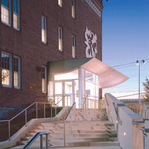 Located in an underserved neighborhood of north Philadelphia with high crime rates, low income levels, and few services, the new Forensic Science Center has helped to breathe new life and a better sense of security into the entire neighborhood. The Forensic Science Center is located in former school building, which was distinguished long ago but had more recently become derelict and was used only by pigeons at the upper floors. The building sat amidst broken glass and other debris on a cracking, completely asphalted lot.