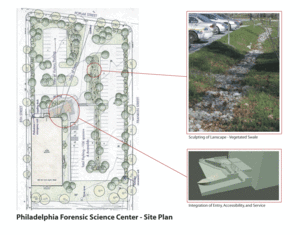 The new Forensic Science Center for the Philadelphia Police Department is both a state-of-the-art forensics laboratory facility and a demonstration project for green design.