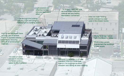 The Austin Resource Center for the Homeless is expected to use 20% less energy than a conventional building.