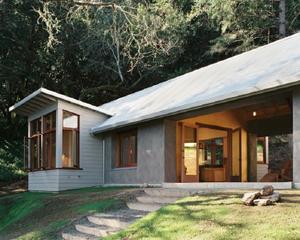 This modest California retreat evokes the spirit of local vernacular buildings and was designed to take maximum advantage of the site and climate to make the house comfortable while minimizing energy use and environmental impacts.