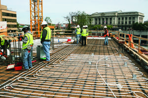 Integration of the active slab tubing, manifolds, and control systems requires a considerable amount of coordination. Intensive efforts were undertaken with the subcontractors to model all elements intended to be integrated with the concrete slab in order to ensure fit and dimensional tolerance prior to placement. The time required for this level of designer-contractor collaboration needs to be anticipated and built into the construction schedule.