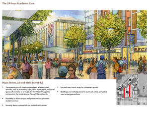 The plan will be developed in four phases. Phase 1 (5,000 students, 1.25 MSF Academic Core) is almost complete. Phase 2 (10,000 students, 2.5 MSF) is currently in the design phase. Phase 3 will accommodate 20,000 students (5 MSF) just before midcentury. Phase 4 will bring the campus to 25,000 students. (6.25 MSF)