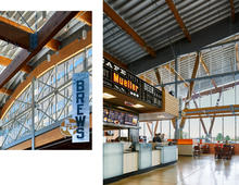 The placement of the cafe and open kitchen at the front of the store create a lively gathering area and help to activate the space. The system and structure were purposely left exposed throughout the store. - Photo Credit: Dror BaldingerThe Robert Mueller Municipal Airport site has been redeveloped into a sustainable urban village. H-E-B Mueller is the anchor tenant for the Mueller development – It was one of the first major retailers to open in Mueller and drove residential and other commercial development in the neighborhood.