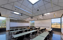 The design team helped PCC examine district-wide standards for energy-saving measures. The final design includes a number of firsts for PCC: an exposed concrete slab in classrooms, a computer lab with laptops in lieu of desktops, no air conditioning, a reduction in vending machines, a non-refrigerated water fountain, and an expanded thermal comfort range. The incorporation of energy monitoring devices allows PCC to study the building's energy use and energy reduction strategies. The design team also talked with faculty and staff about their role in meeting PCC's net-zero aspirations. They, in turn, are educating students on the meaning of net-zero, the larger issue of environmental stewardship, and how students can contribute.