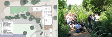 Site Usage Diagram (left), students maintain a low-water, native vegetation garden (right) - Photo Credit: Opsis Architecture