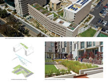 The design incorporates single-loaded corridors, exterior walkways, operable windows, and a building orientation aligned to best capture cooling breezes from the Pacific Ocean. Heating efficiencies are achieved by thermal mass, and an innovative “backwards constructed” rain screen and air-barrier exterior wall that reduces heat loss and water vapor infiltration. Any mechanical heating needed is provided with a localized arrangement of individually controlled radiant panels. The lighting energy demand is largely met by daylighting, which satisfies LEED daylight and view requirements. Daylighting is complemented in public spaces with occupancy-controlled lighting systems.